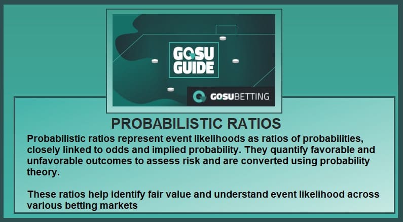 In summary, probabilistic ratios are a tool that can be used to better understand the likelihood of an event, that deliver a way of comparing potential outcomes, and can be used to find value and opportunities in sports betting. They bridge the gap between odds and probabilities and form a central element of a good sports bettor’s toolkit.