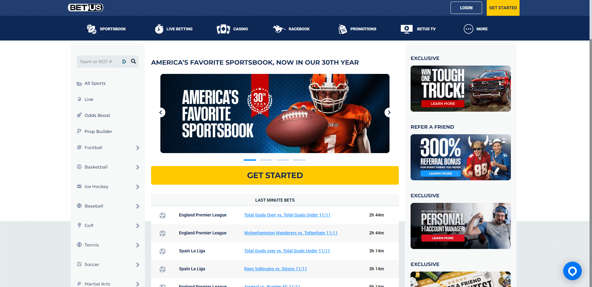 The BetUS betting has probably gotten designed with straightforward usability in mind, with good intentions. Nonetheless, the team that made it failed in this endeavor. The left-side menu does not work here as it does on other sites. When you click a sports category here, let us say Soccer, you expect to get a list of competitions, which you do, but you also get wagering groups such as La Liga Outrights. When you click one of these, you expect to see a long list of options, but sometimes you only get one or two choices because the sportsbook navigates on its own to the live section, with the pre-match events missing. We do not understand why the sportsbook did this. It may have been a bug.
