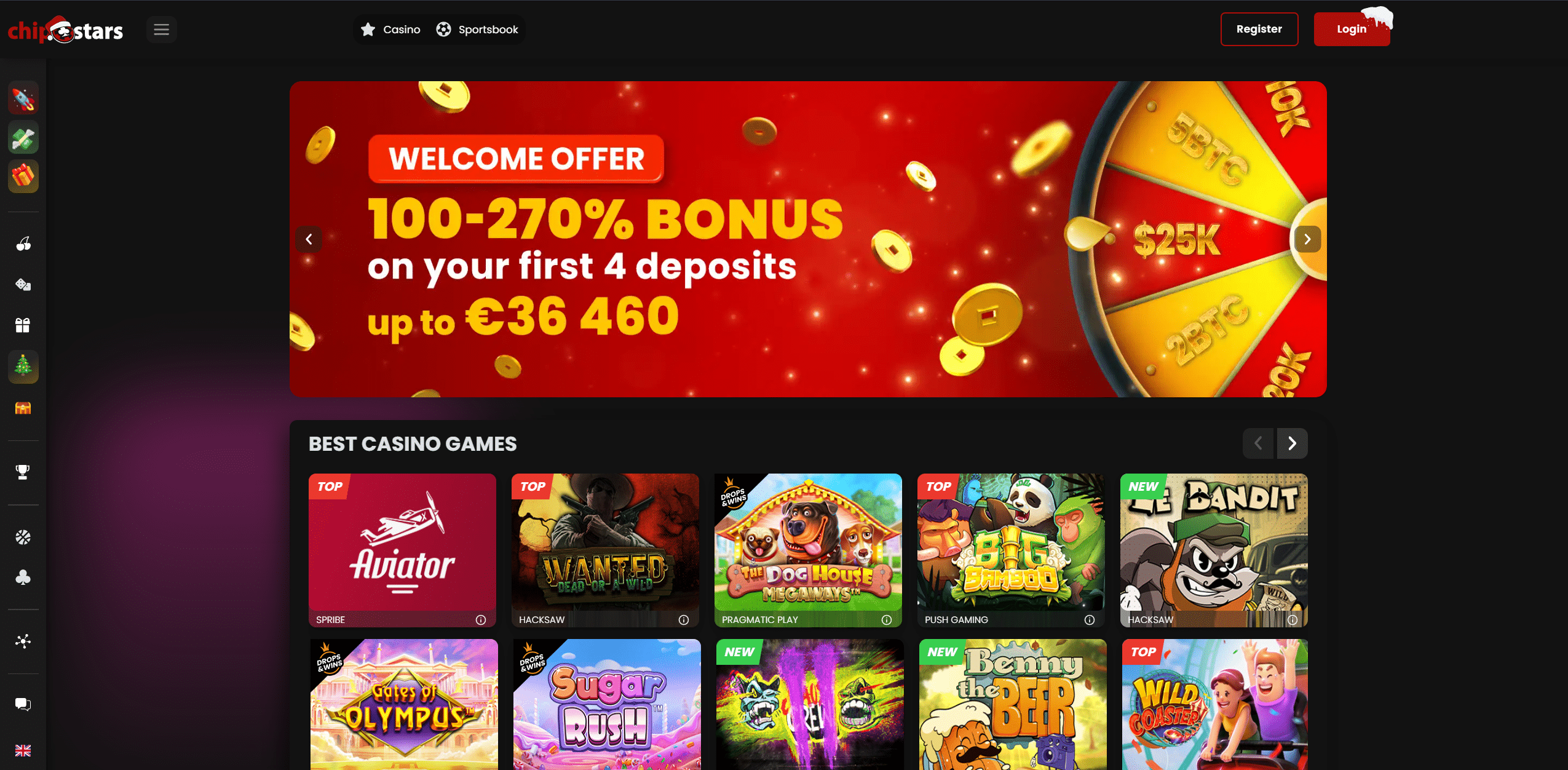 Founded in 2020, ChipStars is a hybrid crypto sportsbook and casino operated by Games & More B.V. That is a Curacao-based entity that has opted to go with Digitain’s acclaimed sportsbook software for this brand, a website that supports twelve cryptocurrencies, alongside fiat options like Visa and Skrill. Its interface is viewable in eleven languages, and the casino section here is among the most game-rich ones on the market.