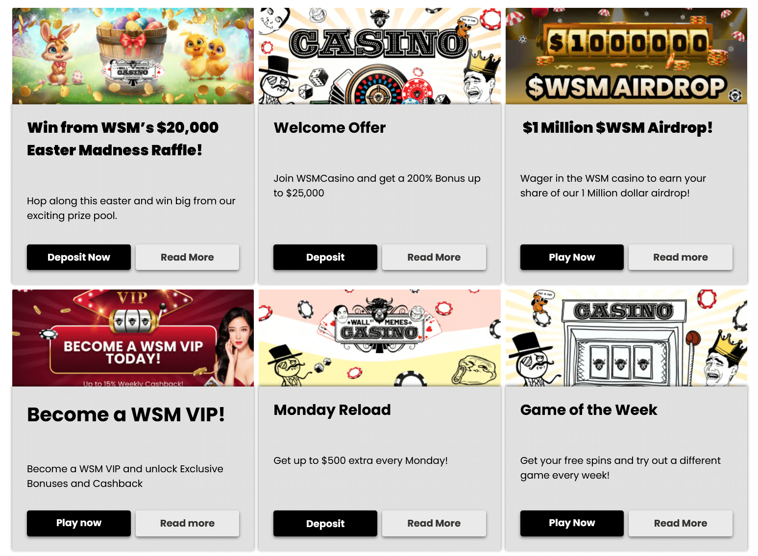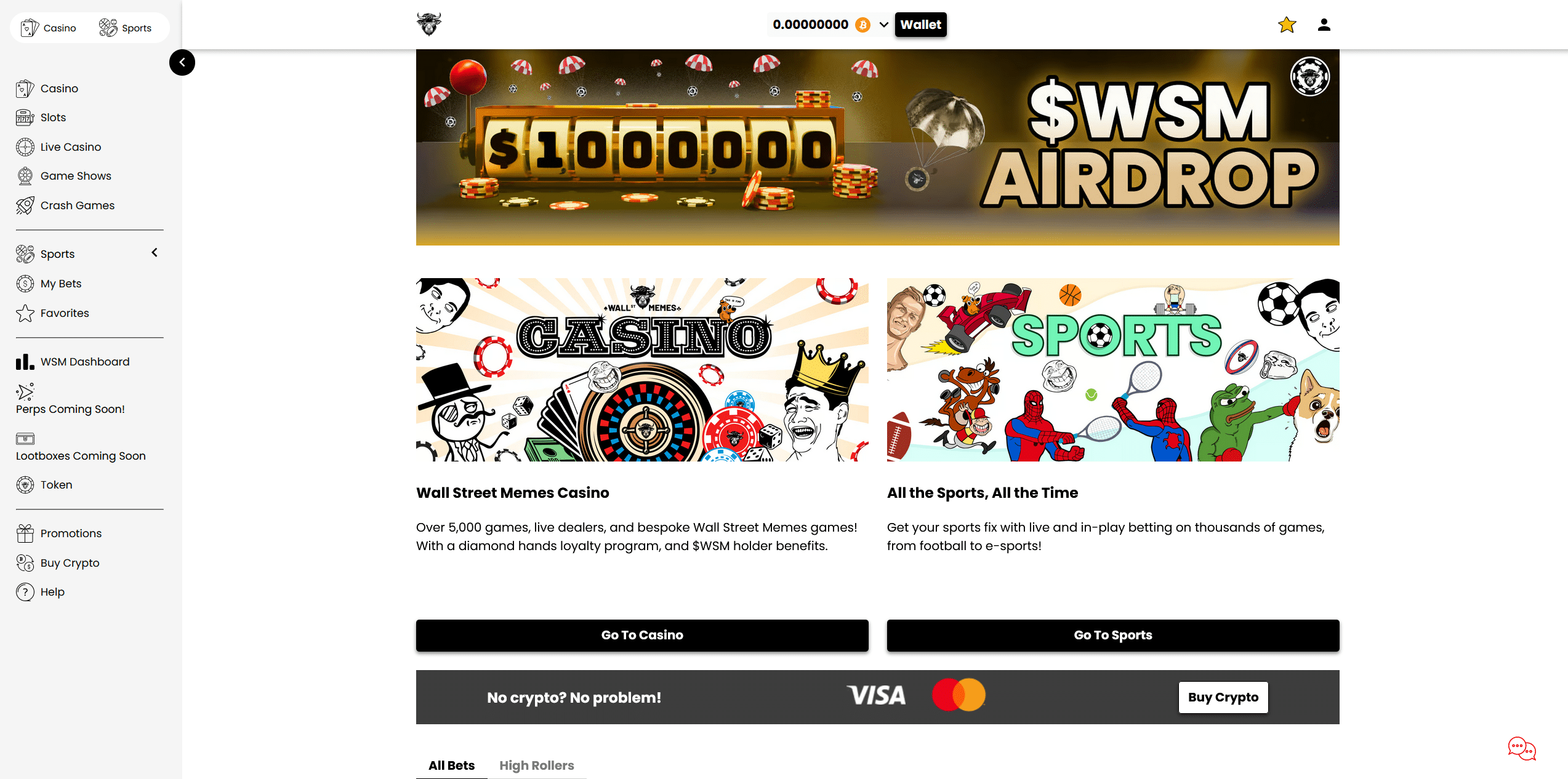 We would put this platform in the same sector section as sites such as CryptoLeo, Betplay, Art Casino, and its sister site Crashino, meaning ones that offer good betting functions but not much else to lure and keep gamblers active. The truth is that WSM Casino started promising, but it is a far cry from top industry players, and it seems to have moved away from trying to appeal to bettors, putting little effort into doing so.