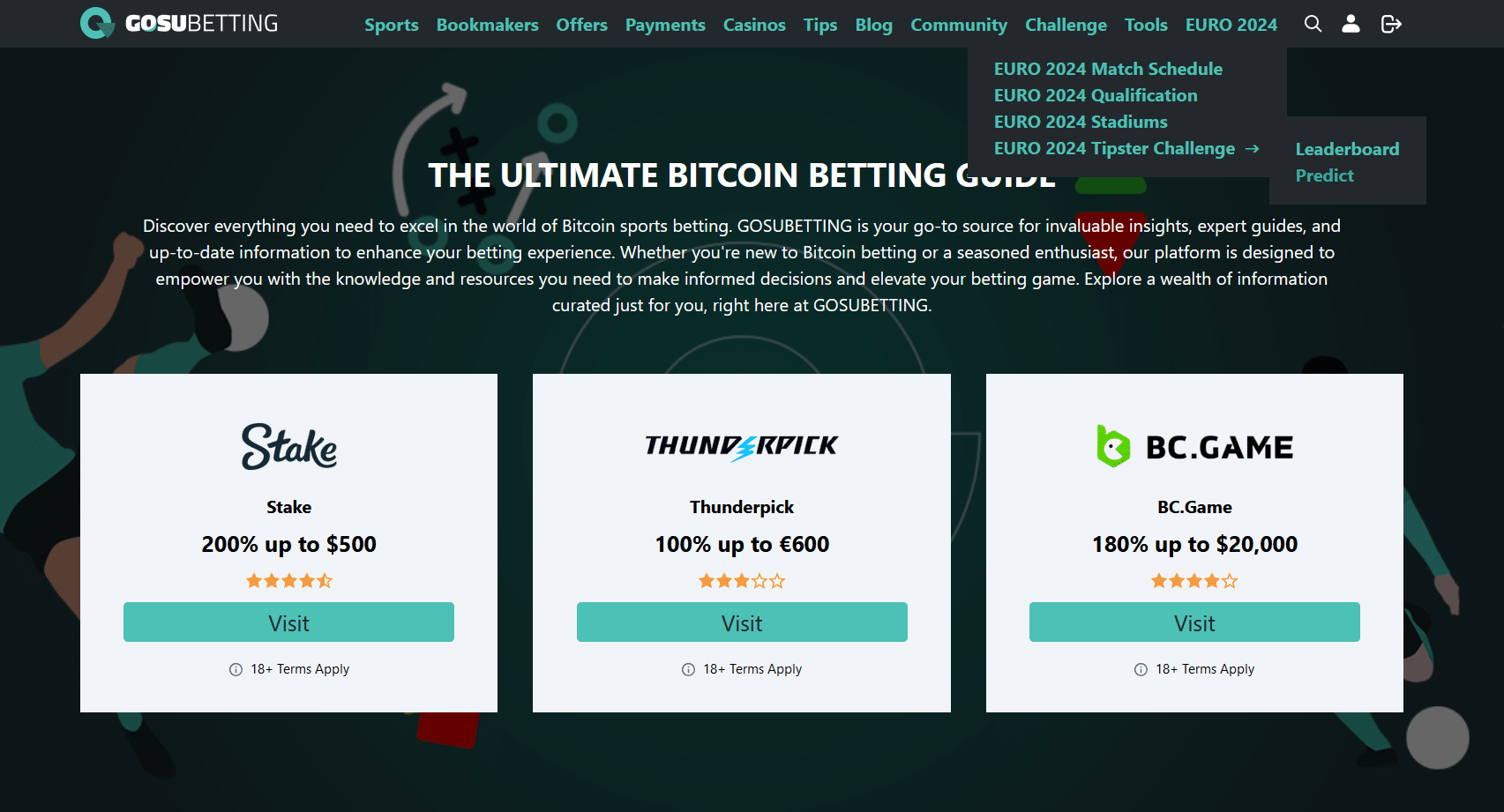 The stakes are high, and the rewards are lucrative! With a total prize pool of $2000 up for grabs, the top performers in the EURO 2024 Tipster Challenge stand to win substantial cash prizes. From the thrill of clinching the top spot to the satisfaction of making it into the top ten, every participant has the opportunity to walk away with a piece of the prize pie. Whether you’re aiming for the coveted first place or vying for a spot among the top contenders, the EURO 2024 Tipster Challenge promises excitement, suspense, and the chance to win big! Our partner for this challenge is BC.Game, one of our favorite Bitcoin sportsbooks & casinos.